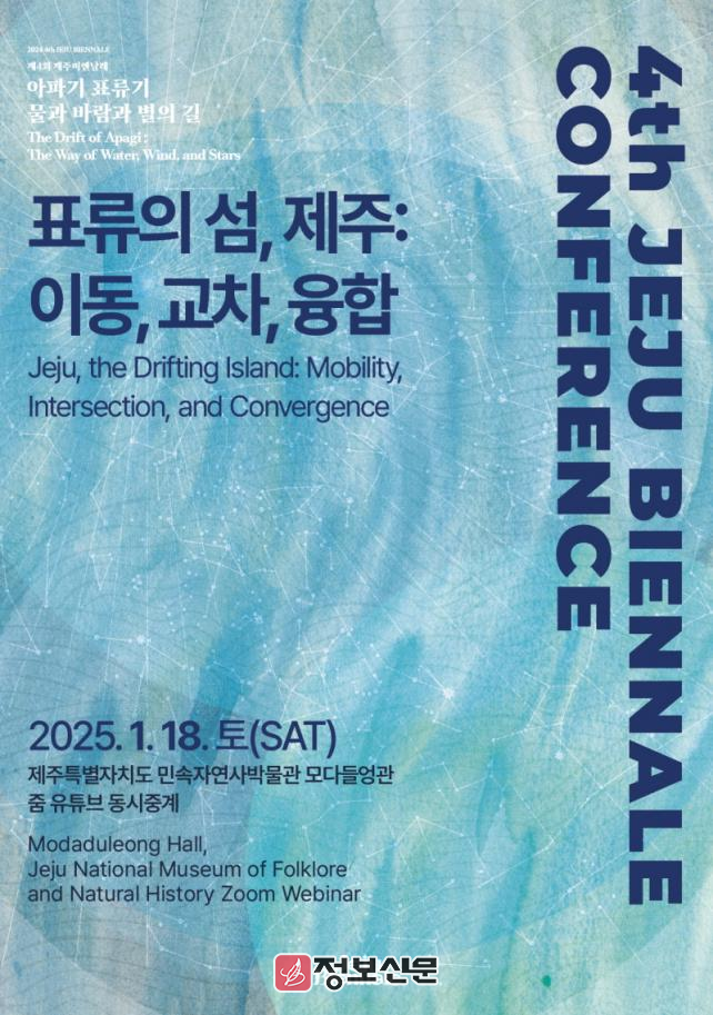 제4회 제주비엔날레 전시 연계 컨퍼런스 <표류의 섬, 제주: 이동, 교차, 융합>은 제주비엔날레 누리집 및 인스타그램 계정(@jejubiennale.official)에 게시된 구글폼 링크를 통해 9일부터 신청할 수 있다. 제4회 제주비엔날레는 ≪아파기(阿波伎) 표류기: 물과 바람과 별의 길(The Drift of Apagi: The Way of Water, Wind, and Stars)≫을 주제로 펼쳐지고 있다.