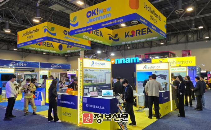 전남관에는 15개 기업이 참여해 인공지능(AI), 메타버스, 재생에너지 등 다양한 첨단 기술을 선보였다. 특히 ㈜비케이에너지는 미국 A사에 10MW 규모의 그린수소발전기를, 미국 B사에 수상태양광 장비를 공급하는 총 2천802만 달러 계약을 했다.