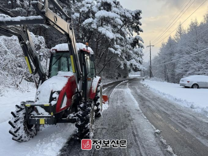 장성군은 덤프트럭, 굴삭기 등 장비 23대를 동원해 제설작업에 총력을 기울이고 있다. 주요도로 74개 노선과 고갯길 13개소에선 제설작업과 제설제 살포를 병행한다.