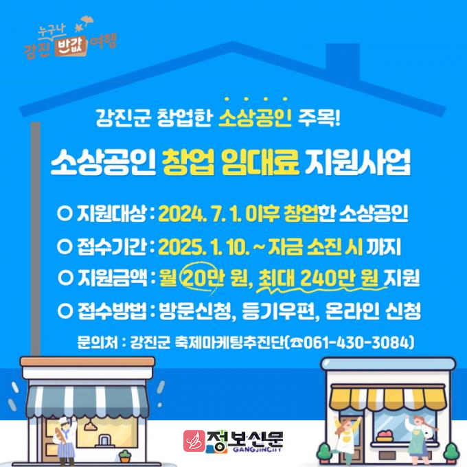 ![]() 강진군, 소상공인 창업 임대료 지원 사업 추진 |