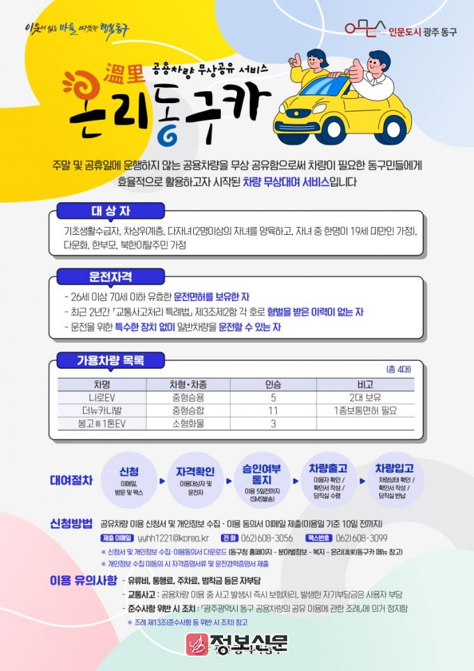 ![]() 광주시 동구, 온리(溫里)동구카 공유 서비스를 시행 |