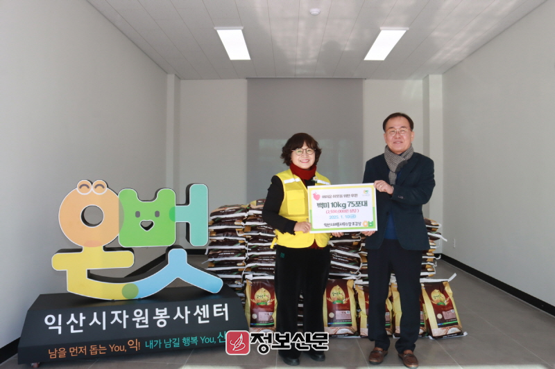 이날 기탁된 백미는 익산시 자원봉사센터(센터장 강태순)가 운영하는 밥차를 통해 취약계층 식사 지원에 사용될 예정이다.