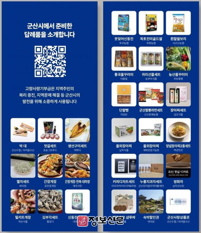 ![]() 군산시, 고향사랑기부 답례품 추가 발굴 공개모집 |
