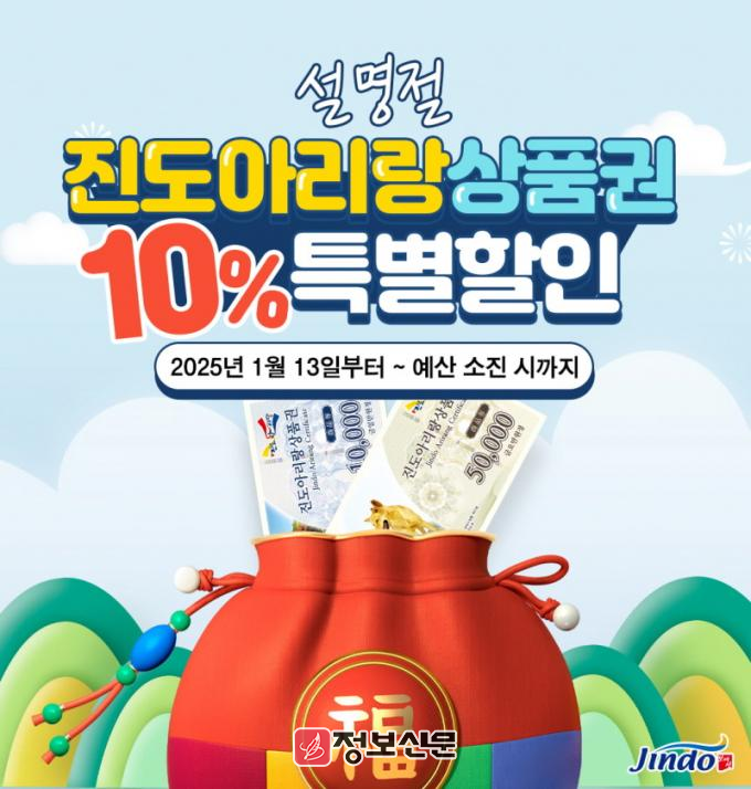 ![]() 진도군, 설 명절 맞이 진도아리랑상품권 10% 할인 판매 |