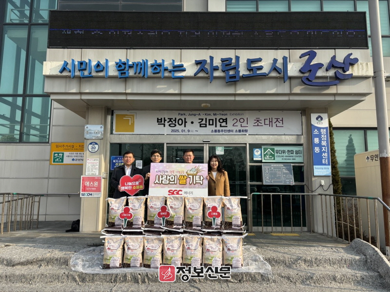 ![]() SGC에너지(주), 설 명절 맞아 소룡동·미성동에 사랑의 백미 기탁 |
