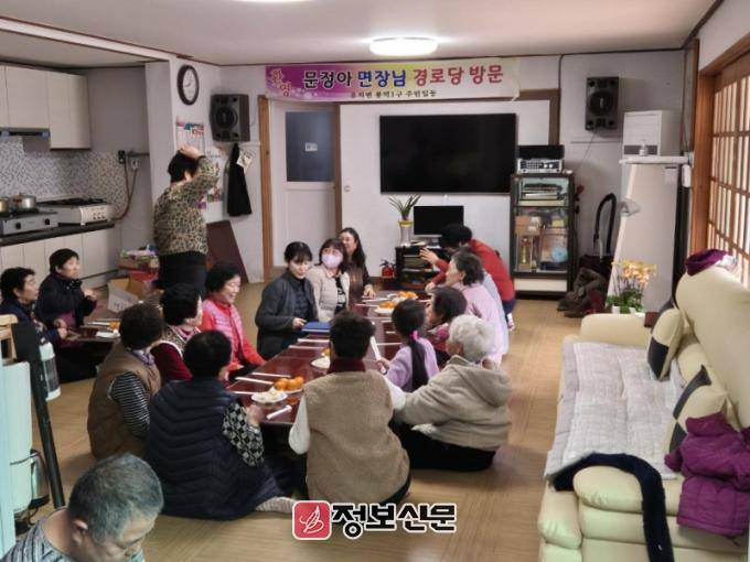 경로당장은 “유치면 출신의 면장이 부임해 너무 기쁘고, 바쁜 일정 가운데 경로당을 방문해 어르신들의 안부를 먼저 살펴준 면장에게 고마움을 전한다”며 “앞으로도 유치면의 발전을 위해 애써달라”고 당부했다.