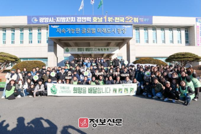 나눔 보따리는 20만 원 상당의 식료품(라면, 참치 통조림, 간장, 식용유 등)과 생활용품(치약, 칫솔, 샴푸, 휴지 등)으로 구성됐으며, 150여 명의 배달천사(봉사자)가 저소득 어르신 가구, 저소득 1인 가구, 겨울철 에너지 취약계층 등 총 100가구에 100묶음의 나눔 보따리를 전달했다. 이날 일일 배달천사로 함께한 정인화 광양시장 또한 저소득 어르신 가구를 방문해 이웃사랑을 실천했다.