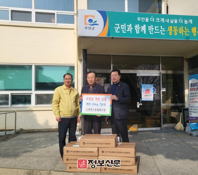 ![]() 무안군 해제신협, 해제면에 사랑의 백미 기탁 |