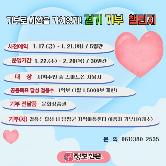 ![]() 담양군, 새해맞이 기부 걷기 챌린지 운영 |