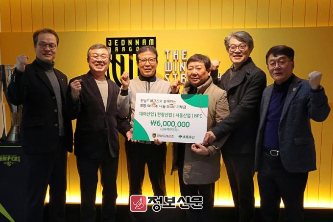 한창산업 한창리 대표는 “전남드래곤즈와 함께 기부챌린지에 참여하게 되어 뜻깊다. 오늘 전달된 기부금이 전남지역 아동들에게 작은 희망이 되길 바란다. 앞으로도 지역사회와 나눔을 이어가도록 하겠다”라고 소감을 밝혔다.