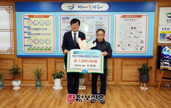 이대연 취락식당 대표와 장흥군청 구구회(회장 박진석)은 14일 기탁식에서 장흥 인재를 육성하는데 도움을 주어 지역발전에 기여하고자 기탁을 하게 되었다며, 앞으로도 꾸준한 관심을 가지겠다고 말했다.