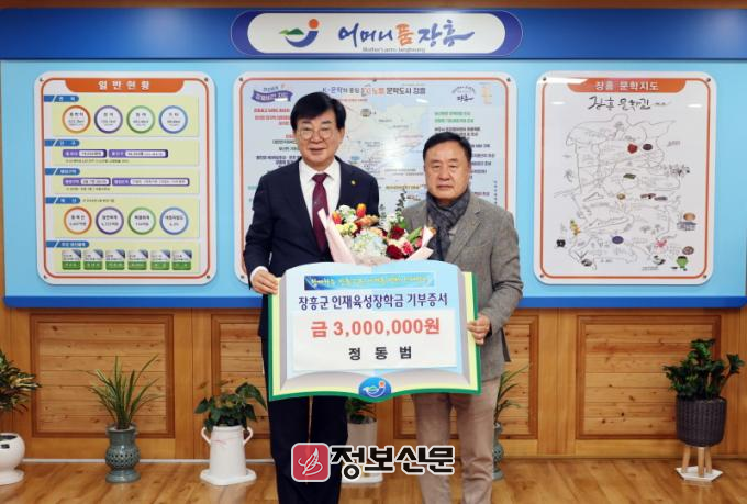 정동범 안양면 기탁자는 13일 “한 해를 시작하며 장흥 발전의 초석이 될 지역인재 양성을 위한 뜻깊은 일을 함께 할 수 있어서 기쁘다”고 밝혔다.