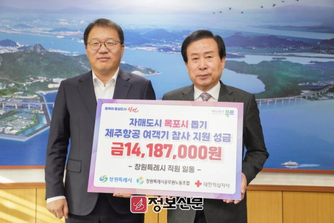 목포시는 창원특례시가 제주항공 여객기 사고 희생자를 위해 직원 성금모금을 진행했고, 이를 자매도시인 목포시에 지난 15일 지정 기탁했다고 밝혔다.