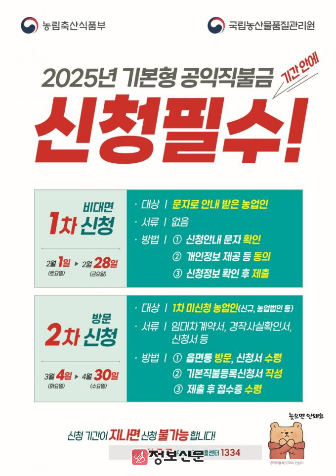 이에 따라 기본형 공익직불금과 기후위기시대 식량안보 강화를 위해 선택형 전략작물 직불금, 저탄소농업 프로그램을 확대 지원할 계획이다.