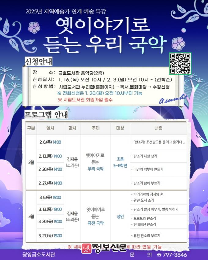 ![]() 광양금호도서관, 전통과 현대를 넘나드는 판소리 특강 운영 |