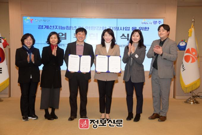 광주광역시(시장 강기정)와 재단법인 청년재단은 16일 오후 시청 비즈니스룸에서 ‘경계선지능 청년 일 역량 강화 지원사업 추진을 위한 업무협약’을 체결했다.
