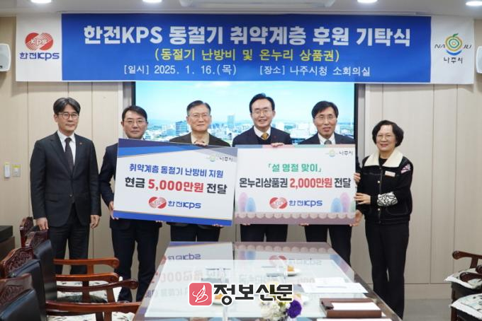 김홍연 한전KPS 사장은 “이번 후원을 통해 어려운 이웃들이 따뜻한 겨울을 보내길 바란다”며 “앞으로도 나주시와 협력해 사회적 책임을 다하고 지속적인 나눔을 실천하겠다”고 말했다.