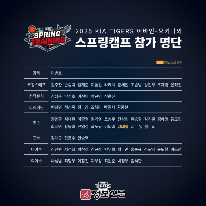이번 스프링캠프에는 코칭스태프 22명, 선수 38명 등 60명의 선수단이 참가한다. 선수단은 투수 18명, 포수 3명, 내야수 10명, 외야수 7명으로 구성됐다. 2025년 신인 가운데에서는 투수 김태형이 유일하게 명단에 이름을 올렸다.