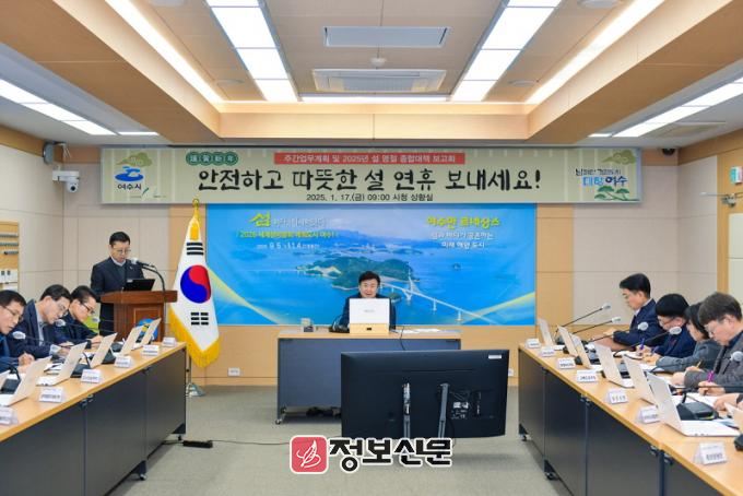 ![]() 여수시는 17일 오전 정기명 시장 주재 하에 ‘설 명절 종합대책 보고회’를 개최했다. |
