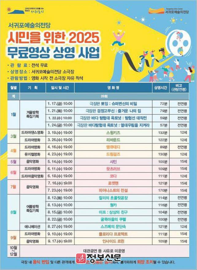 ![]() 서귀포시, 시민을 위한 무료영화 상영 사업 운영 |