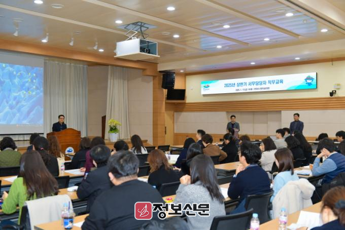 ![]() 여수시(시장 정기명)는 지난 17일 신규 및 저연차 직원들의 원활한 부서 운영과 각종 행정서비스 전문성을 높이기 위해 ‘2025년 상반기 서무담당자 직무교육’을 실시했다고 밝혔다. |