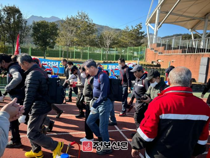 체력 검정은 산불 진화에 사용하는 등짐펌프를 메고 2km를 걸어서 시간을 체크하여 반영하는 것으로, 선발 과정에서 엄격한 기준을 적용하여 공정성과 투명성을 확보하고, 체력 및 지구력을 측정하여 산불 진화 전문인력을 선발하고자 한 것이다.