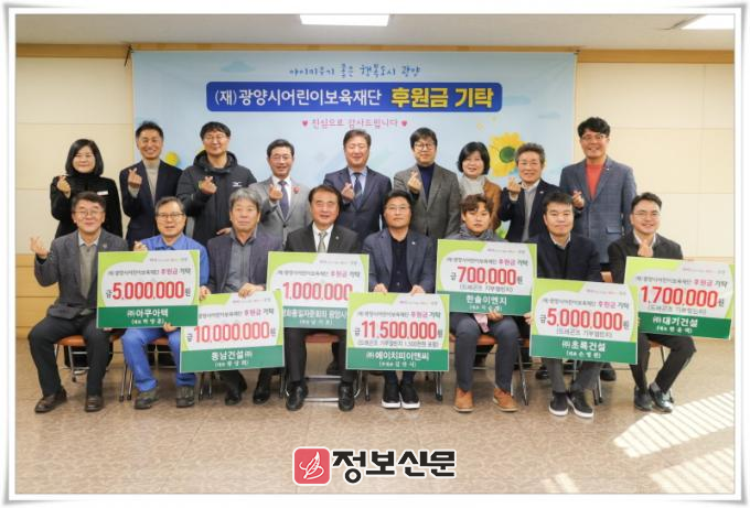 이광용 어린이보육재단 이사장은 “어린이보육재단에 관심을 가져주셔서 진심으로 감사드린다. 여러분의 소중한 후원금으로 올 한해도 우리 시의 어린이들을 위하여 좋은 사업을 많이 펼칠 수 있도록 하겠다”고 말했다.
