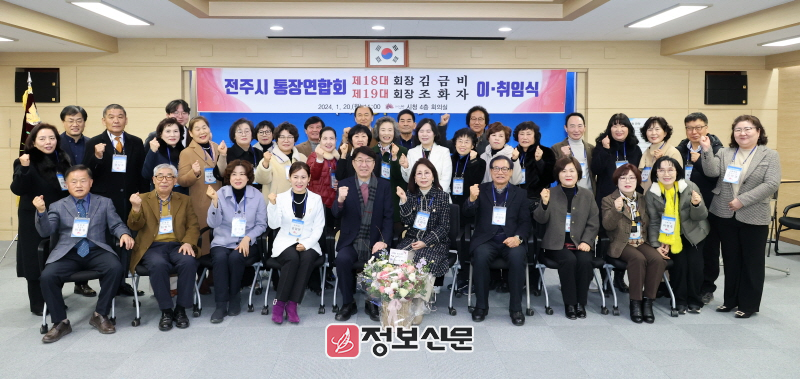 전주시는 20일 시청 4층 회의실에서 제18대 김금비 전임 회장에 대한 이임과 조화자 신임 회장에 대한 취임을 알리는 ‘전주시 통장연합회장 이·취임식’을 개최했다.