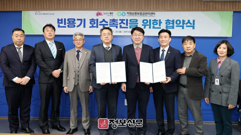 ![]() 전주시, 자원순환보증금관리센터와 빈용기 회수촉진을 위한 업무협약 체결 |