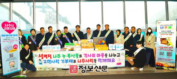 나주시가 지난 20일 광주송정역에서 민족 대명절인 설을 맞아 우수 농·특산물 및 고향사랑기부제를 홍보했다고 21일 밝혔다.