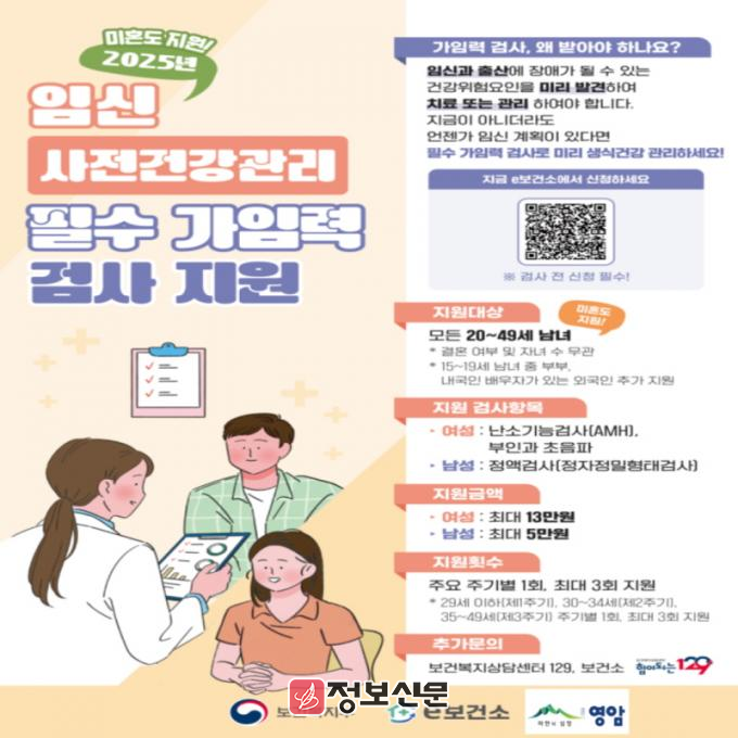 최문형 영암군보건소장은 “임신의 준비 단계부터 건강을 관리할 수 있도록 많은 분들이 사업에 신청 바란다. 적절한 조기 검진 및 관리로 난임 예방, 건강한 임신·출산을 지원하겠다”라고 말했다.