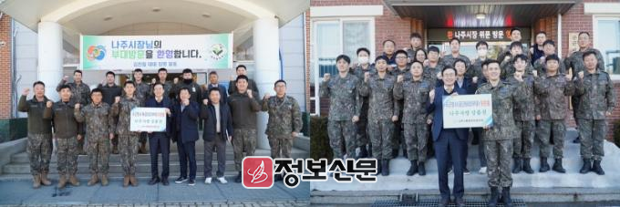 윤병태 나주시장은 “추운 날씨 속에서도 묵묵히 국방의 의무를 다하는 군 장병들이 따뜻하고 즐거운 명절을 보내기를 바란다”며 “재난·재해 상황에서 대민 지원과 복구 활동에 헌신한 군 장병들의 노고에 깊이 감사드린다”고 전했다.