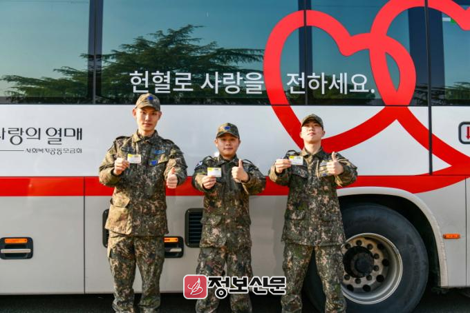 하를 웃도는 추운 날씨에도 불구하고, 새해 첫 헌혈 행사에 참여하려는 열기는 뜨거웠다. 헌혈 차량 앞에 줄지어 선 장병들은 차례대로 소매를 걷어붙이고 헌혈에 동참했다.