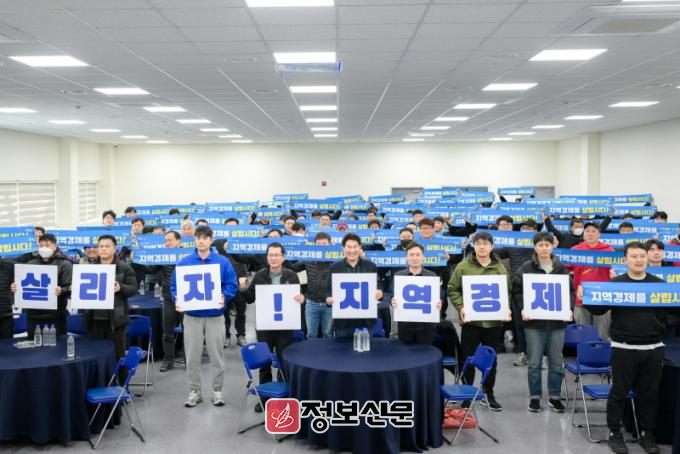끝으로 순천시 환경미화원 125명은 지역경제 활성화에 다 함께 동참하자는 의미로 “지역경제를 살리자”라는 주제의 플래카드 퍼포먼스를 펼쳤다.