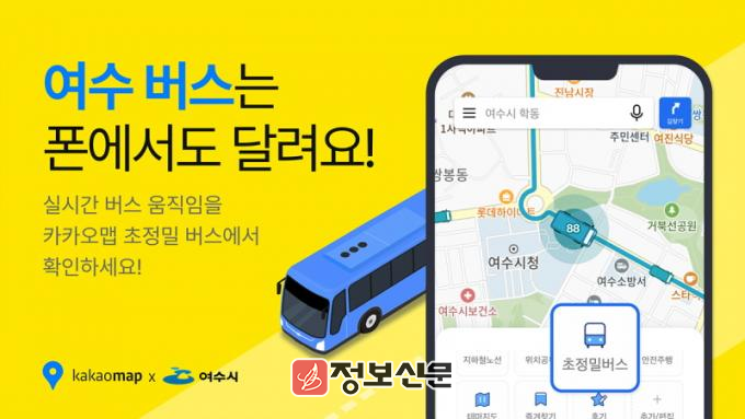 ![]() 여수시(시장 정기명)는 ‘카카오맵’ 앱을 통해 실시간으로 시내버스 위치정보를 제공하는 초정밀버스 안내 서비스를 도입했다고 23일 밝혔다.