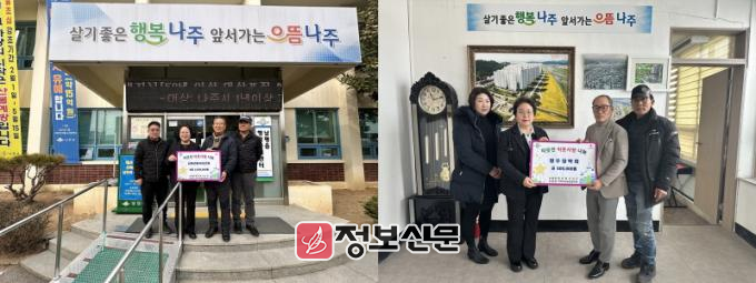 이재덕 남평읍장은 “이웃을 위해 보여주신 따뜻한 나눔 덕분에 남평읍이 희망과 온정으로 가득 채워지고 있다”며 “이번에 기탁된 성금과 물품은 어려운 이웃들이 행복한 명절을 보낼 수 있도록 잘 전달하겠다”고 감사의 뜻을 전했다.