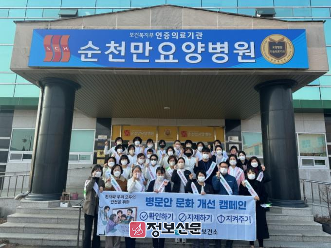 시는 설 명절을 맞아 요양병원 등에 문병객이 급증할 것으로 예상되어 지난 20일, 순천생협요양병원 등 3개소를 시작으로 21일에는 순천삼성요양원 등 요양시설 2개소에서 안전한 병문안 문화 조성 캠페인 및 감염병 예방수칙 홍보 활동을 펼쳤다.