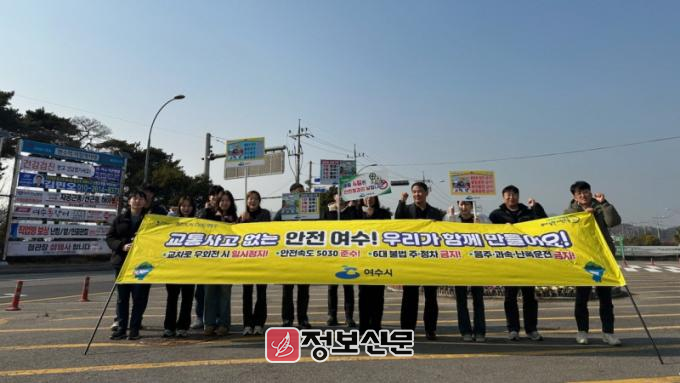 이날 여수시 안전보안관 등 40여 명은 교통안전 현수막과 피켓, 홍보물(구급키트) 등을 활용해 ▲우회전 시 일시 정지 ▲음주·과속·난폭운전 금지 ▲보행자·운전자 스마트기기 사용 금지 등 4대 교통안전수칙과 선진 교통문화 정착 홍보활동을 펼쳤다.