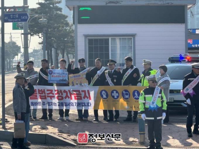 ![]() ‘설 명절 대비 교통안전 캠페인’ 진행 모습. (사진제공-나주시) |