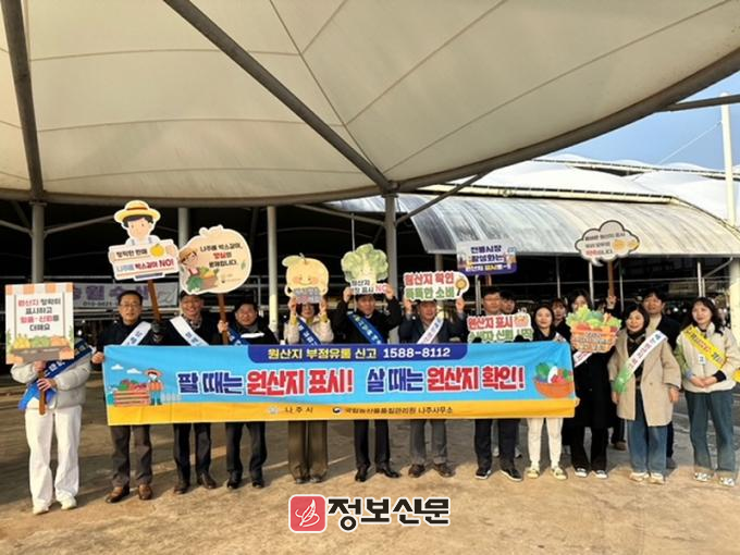 이번 캠페인은 나주시와 국립농산물품질관리원 명예감시원 등 30여 명이 함께 참여한 활동으로 원산지 표시 전단지와 표시판, 홍보용 물티슈를 배포하며 시민과 상인들에게 원산지 표시의 중요성을 알렸다.