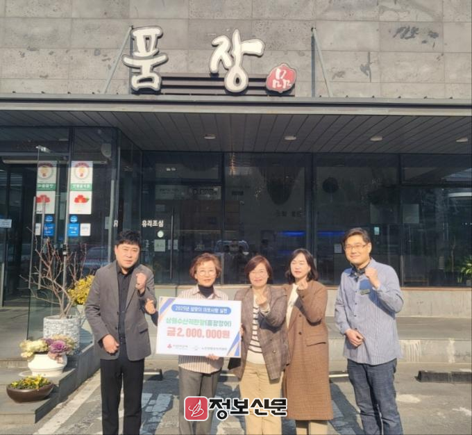 ![]() 삼원수산직판장이 나주시 노안면에 설맞이 후원금 200만 원을 기탁했다. (사진제공-나주시) |