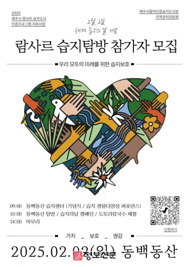 제주시 양경원 환경관리과장은 “이번 행사에 많은 관심과 참여를 부탁드리며, 시민들이 습지의 소중함과 지속 가능한 환경 보호 의식을 함양하는 계기가 되기를 바란다”고 밝혔다.