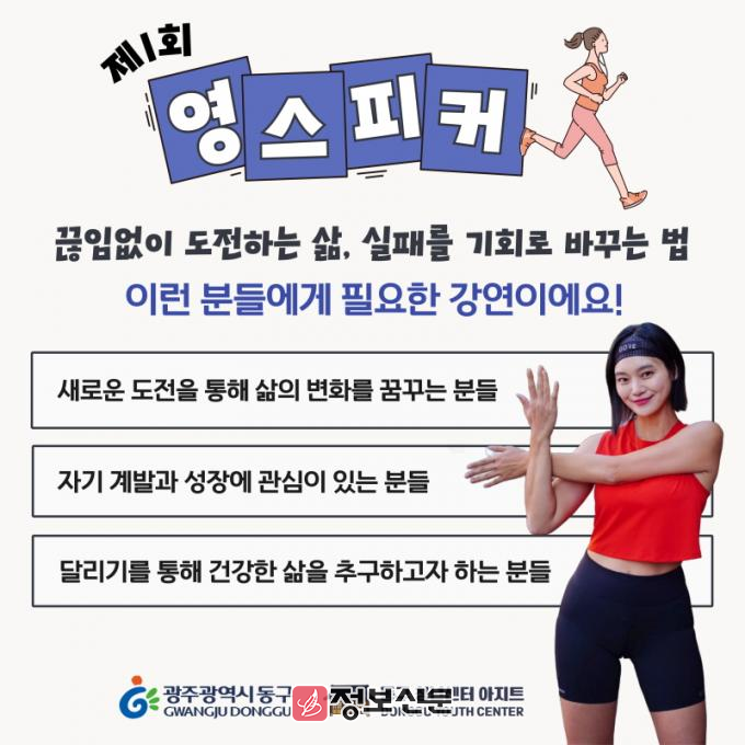 올해 개최하는 ‘제1회 영 스피커’ 강연에는 러닝 전도사 안정은 대표가 강사로 나선다. 안 대표는 ‘끊임없이 도전하는 삶, 실패를 기회로 바꾸는 법’을 주제로 강연을 펼칠 예정이며 청년들에게 도전 정신과 긍정적인 에너지를 심어줄 것으로 기대된다.