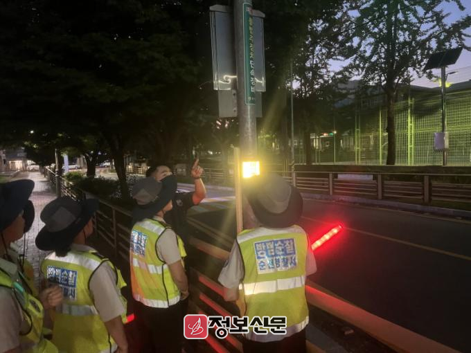 지난 24년 9월 3일 19:00경 순천경찰서(경찰서‧금당지구대)‧협력단체(여성 자율방범대‧글로컬 치안봉사단) 26명이 전남 순천시 금당지구 대상 야간 합동 순찰을 실시하였으며, 순찰 중 주민(40대 女)로부터 “버드내 공원 놀이터 주변이 너무 어두워 불안하다.”는 의견을 청취하고 순천경찰서 범죄예방대응팀(CPO)에 통보하였다.