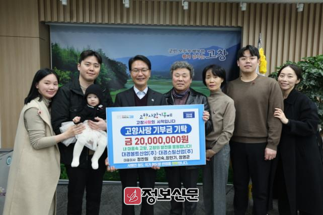 ![]() 대경스틸산업 정찬원 대표 가족, 고창에 고향사랑기부금 2천만원 기탁 |
