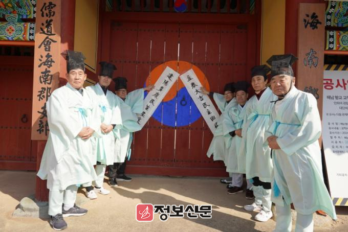 해남향교 임형기 전교는“경기 침체 등으로 온 국민이 어려움을 겪고 있는 상황에서 땅끝해남에서 봄이 시작되는 좋은 기운을 담아 나라에 길한 일만 생기기를 바라는 마음을 담았다”며“어려운 일은 봄눈처럼 사라지고, 경사스러운 일만 가득하길 기원한다”고 의미를 전했다.