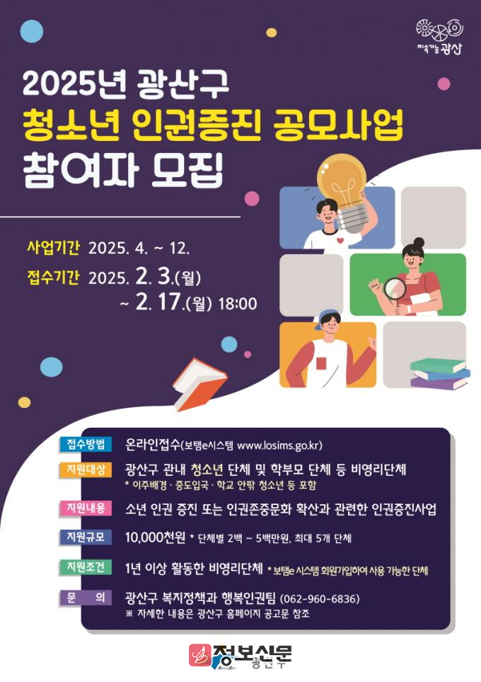 ![]() 광주시 광산구, 2025년 청소년 인권증진 공모사업 추진 |