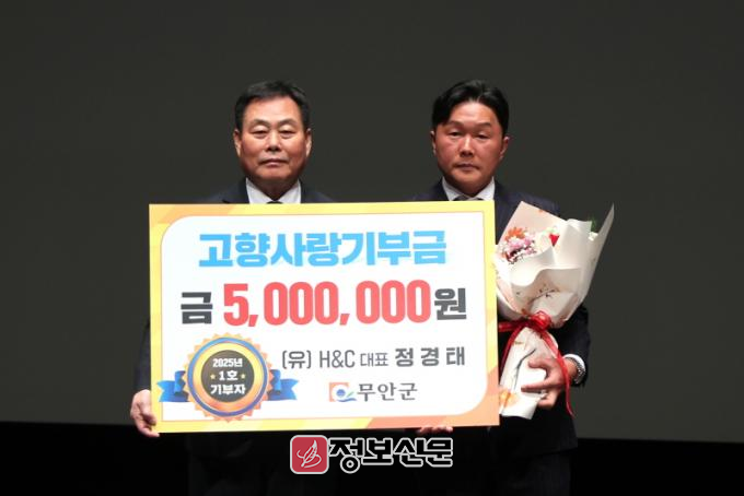 12‧29 제주항공 여객기 참사 수습으로 인해 늦어진 기탁식에서는 고향사랑기부제가 시행된 2023년부터 3년 연속 남다른 고향 사랑을 보여주고 있는 (유)H&C 정경태 대표가 1호 고액 기부자로서 자리를 빛냈다.