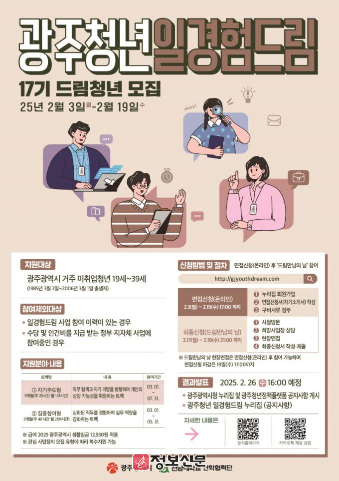 ![]() 광주광역시, 제17기 드림청년 모집 |
