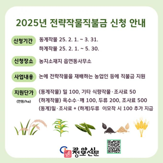 ![]() 광양시, 2025년 전략작물직불금 사업 추진 |
